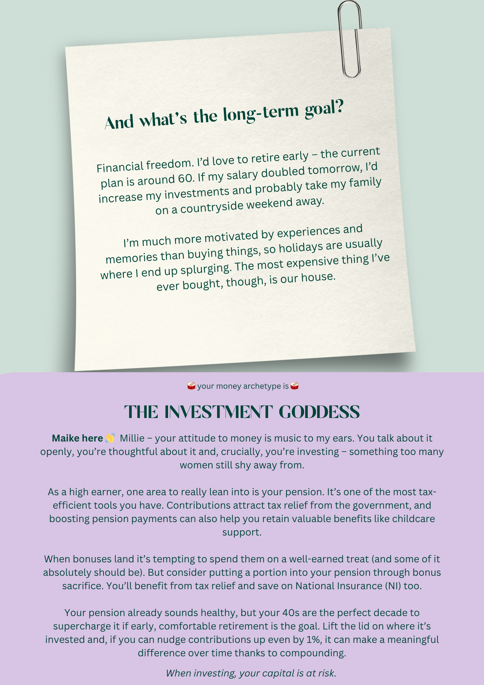 Welcome to Money Archetypes – a new series lifting the lid on the often mysterious world of money. Each week, someone from our community shares their real-life numbers, habits and goals – the good, the messy and everything in between – because there’s no one “right” way to do finances. We’ve partnered with Maike Currie, an advocate for improving women’s financial resilience and VP Personal Finance at PensionBee, to help us out. Anything discussed should not be regarded as financial advice and as always with investing, your capital is at risk.